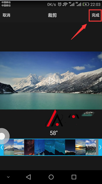 5、接著就會(huì)進(jìn)入視頻編輯界面,ok后【完成】即可;