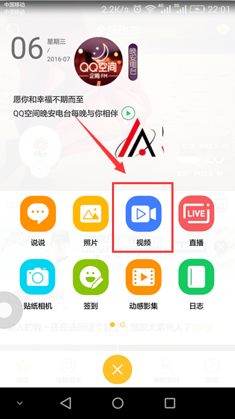 2、手機(jī)QQ空間直播大大的【視頻】功能按鈕就展現(xiàn)在你的眼前;'