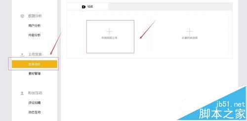 3、點擊發表動態,然后選擇“本地視頻上傳”,選擇你想發布的視頻,一般主流的格式都支持的,不過建議視頻不要太長,3秒到3分鐘最合適,當然如果你覺得視頻不錯可以更長的。
