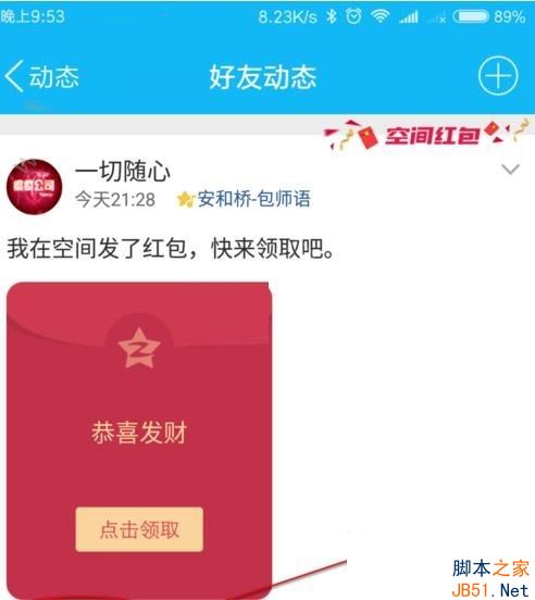 2、在好友動態頁面找到好友發的紅包,然后點擊領取按鈕就可以快速搶到QQ空間小紅包了喲。