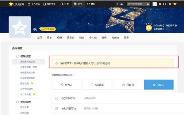 6、然后別人訪問你的空間就會彈出回答問題的權限了;