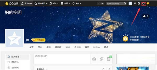 2、進入QQ空間之后,找到一個設置圖標,點擊進入設置;