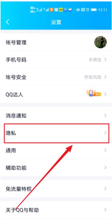 4、點擊【隱私】