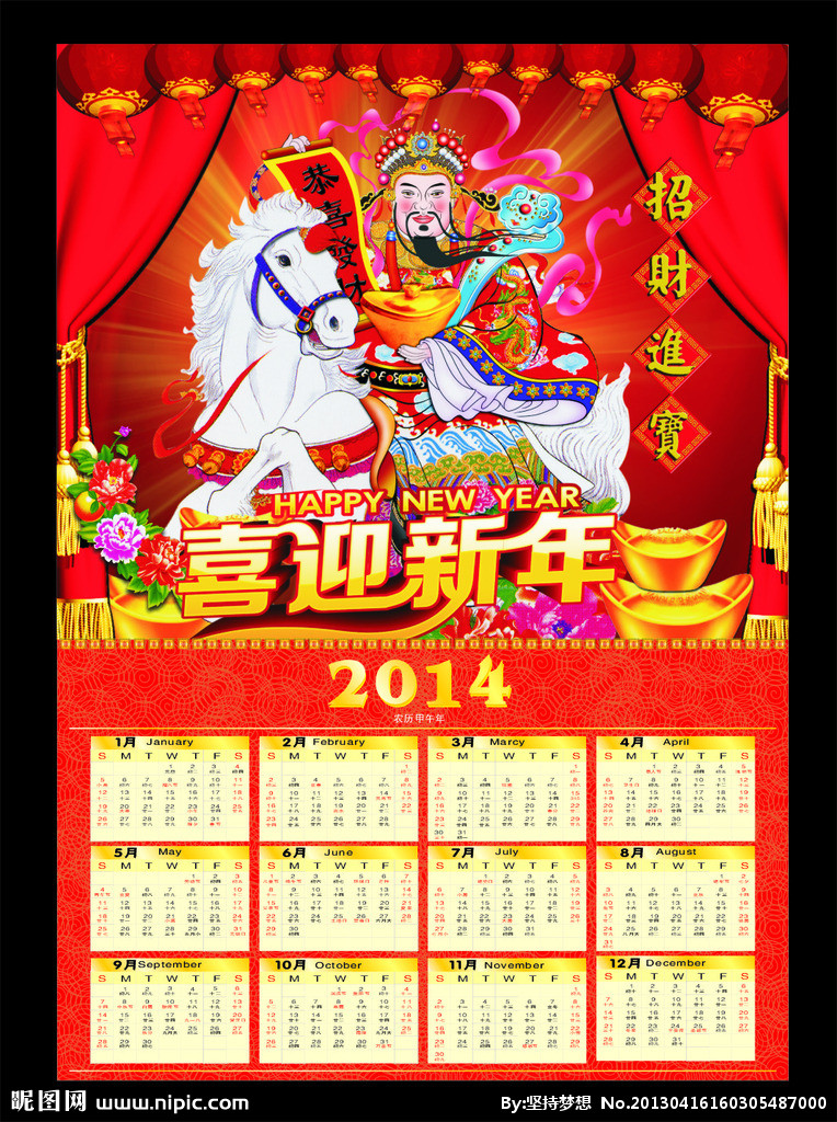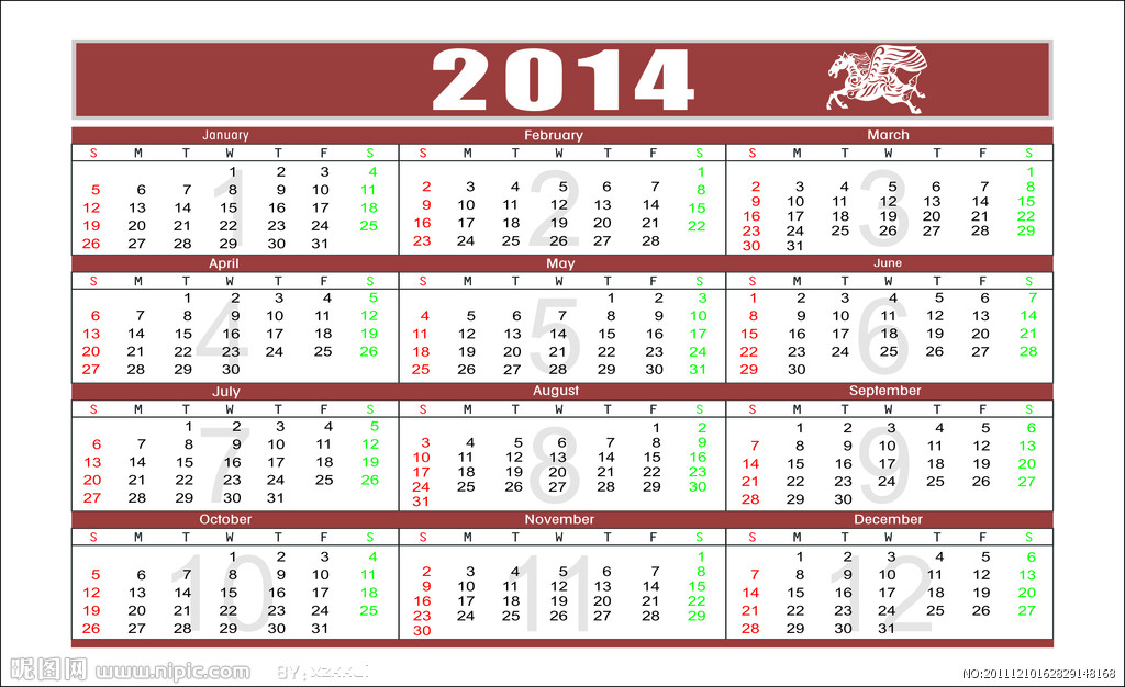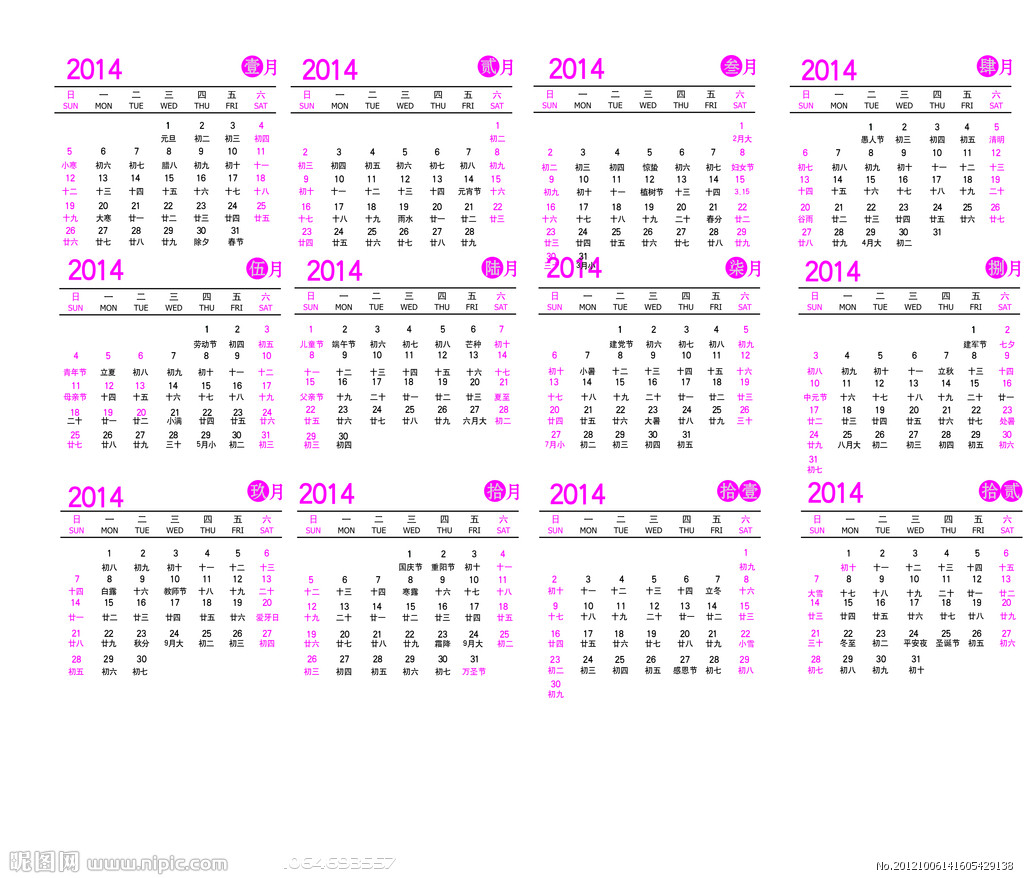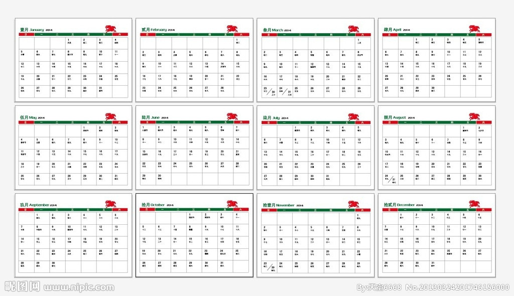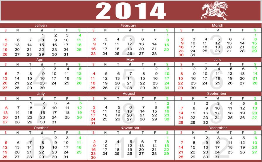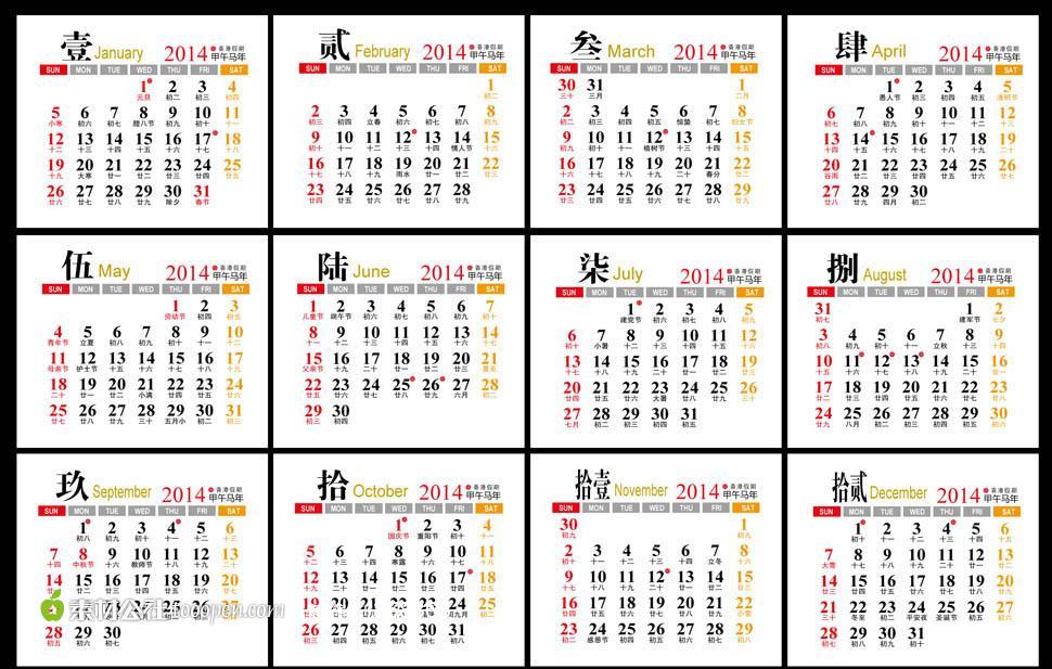 2014年日歷全年帶農(nóng)歷圖片 2014年日歷打印版