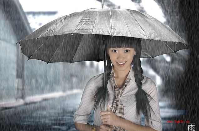 雨中打傘的美女孩圖片 雨中打傘唯美意境圖片