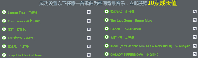 成功設置一下任意一首歌曲為空間背景音樂,立即獲贈10點成長值