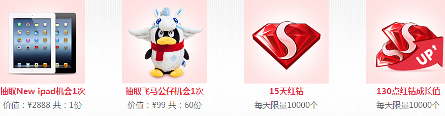2、在當前活動頁面開通/續費相應時長的紅鉆即可在對應獎品區內兌換對應禮物一份,開通越多,禮品越多。開通一年紅鉆還可多獲贈一次抽取成長大獎的機會哦!