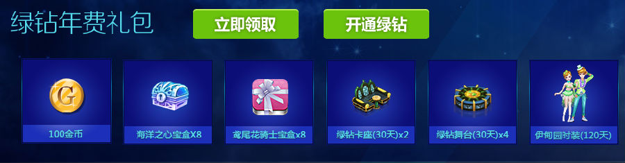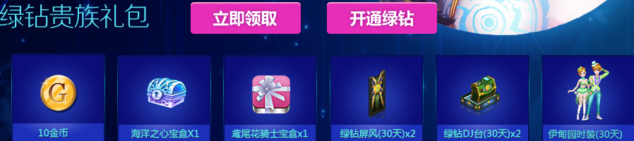 1、開通綠鉆可以領取的規則禮包內容如下: