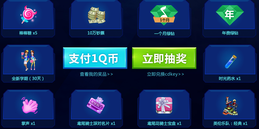 3、支付1Q幣即可獲得1次抽獎機會,100%中獎;支付Q幣越多,獲得獎品越多。