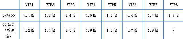 附:超級QQ和QQ會員(提速后)各VIP等級的QQ加速倍數