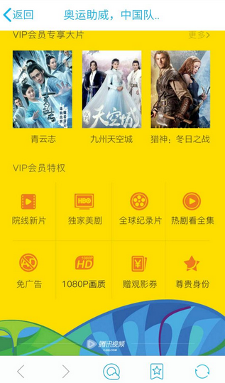騰訊視頻奧運助威免費領取3天VIP會員活動
