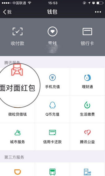 1.體驗面對面紅包功能需將微信升級至最新版本(6.5.4版本)。更新后,找到微信里的錢包,