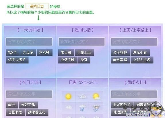 葉子:如果你這個都不知道那你就OUT了!所謂魔方日志就是九個方方正正的小格子,根據(jù)小格子上的標(biāo)題添上對應(yīng)的內(nèi)容,就完成一篇日記,整個過程不過幾分鐘。方便快捷,因此在網(wǎng)絡(luò)上廣為流行。