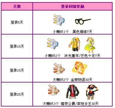5月1日—5月31日期間,若您在游戲中累積登錄5天、10天、15天、25天,都能拿走超豐厚的回饋獎勵,累積登錄時間越久,獎勵越豐厚。
