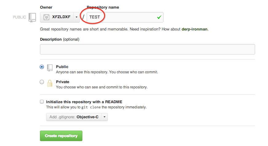 2.然后跳轉(zhuǎn)下一個(gè)頁面,填寫repository name,如:TEST,在Add .gitgore一項(xiàng)根據(jù)你所使用語言選擇,其他的默認(rèn),然后creat repository