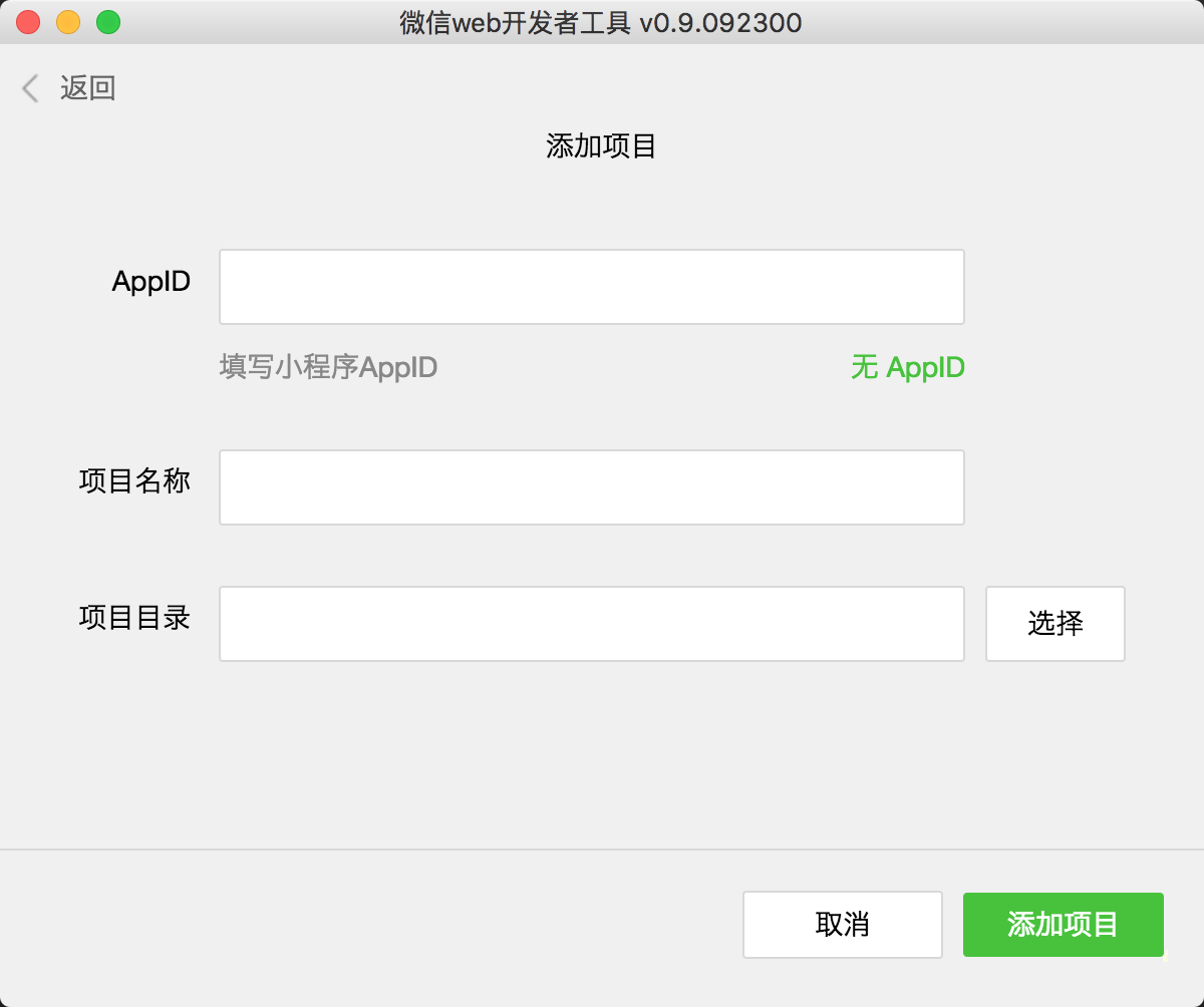 創(chuàng)建項(xiàng)目的時(shí)候,要選擇無(wú) appid, 這樣就不會(huì)有 appid 的驗(yàn)證了。