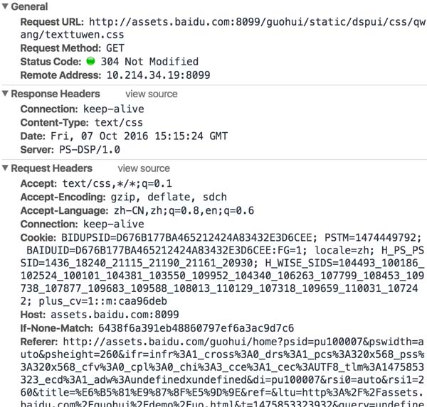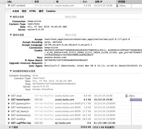 如上是火狐下的firebug,可以看到html頁面請求返回304,并且請求頭中帶上了If-None-Match參數,這和chrome一樣。