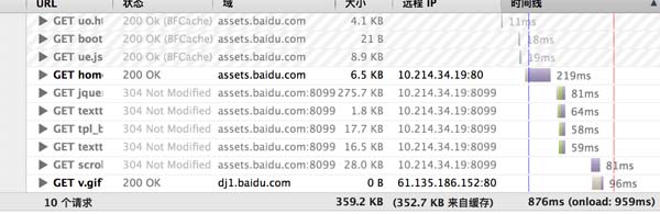 后退刷新主要指的是那些設置了頁面強行不緩存的網站,chrome在這里比較符合標準,從一個當前頁面跳轉到另一個頁面,再回退回來時,頁面上的資源都是直接請求的緩存: