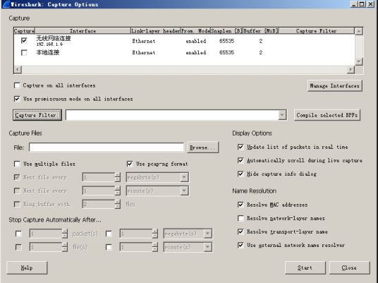 點(diǎn)擊"Capture Filter",此處選擇的是"HTTP TCP port(80)",選擇后點(diǎn)擊上圖的"Start"開始抓包。