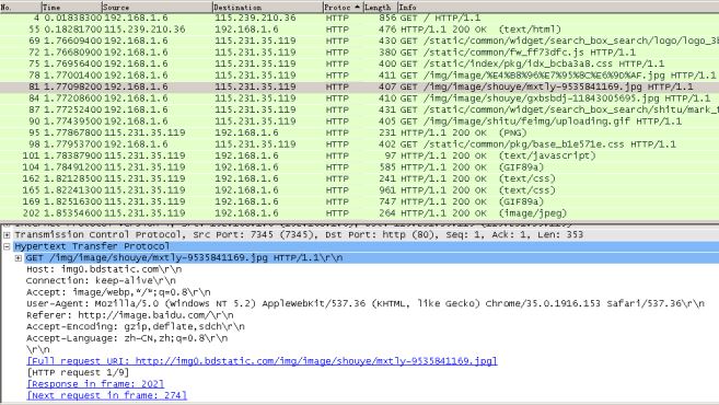 然后在瀏覽器中打開http://image.baidu.com/,抓包結(jié)果如下圖所示: