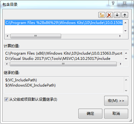 解決的辦法是從新設置包含目錄。選擇項目-->%項目名稱%屬性-->VC++目錄,設置包含目錄為C:/Program Files %28x86%29/Windows Kits/10/Include/10.0.15063.0/ucrt: