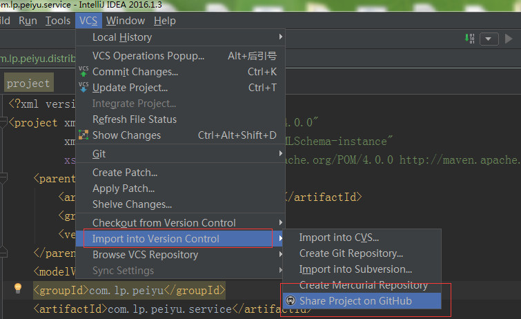 然后在進行如下操作,這樣我們項目就成功添加到GitHub上了,后續我們就可以提交到svn一樣吧代碼提交到git上然后同步到GitHub上了。