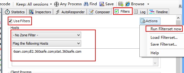 對(duì)一個(gè)重新載入的頁(yè)面進(jìn)行抓包,如果包的條目過(guò)多而你需要關(guān)注的就那么幾項(xiàng)的話,可以使用Fiddler的過(guò)濾器Filters進(jìn)行抓包,那么抓包時(shí)只會(huì)抓取你希望抓到的那些包。切換到Filters標(biāo)簽勾選Use filter,以便激活過(guò)濾器,這樣下面的各種過(guò)濾方式就可以進(jìn)行選擇了。