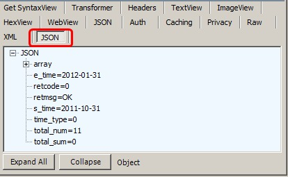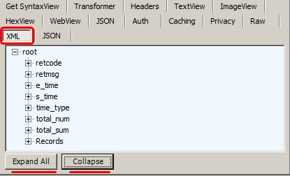 雙擊這次請(qǐng)求包在Inspectors標(biāo)簽下查看返回?cái)?shù)據(jù)為XML格式,而JSON格式一欄為空: