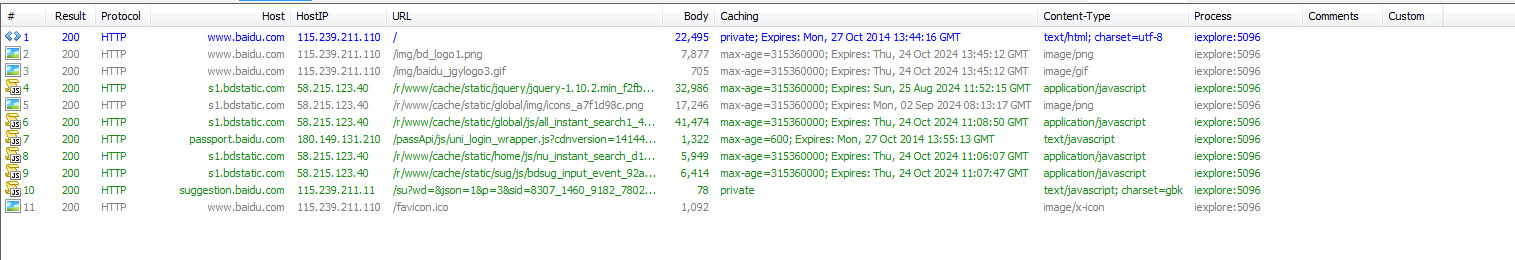 如淺綠色表示圖片類(lèi)型的響應(yīng);深綠色是 JavaScript;紫色是 CSS;其它都是藍(lán)色。
