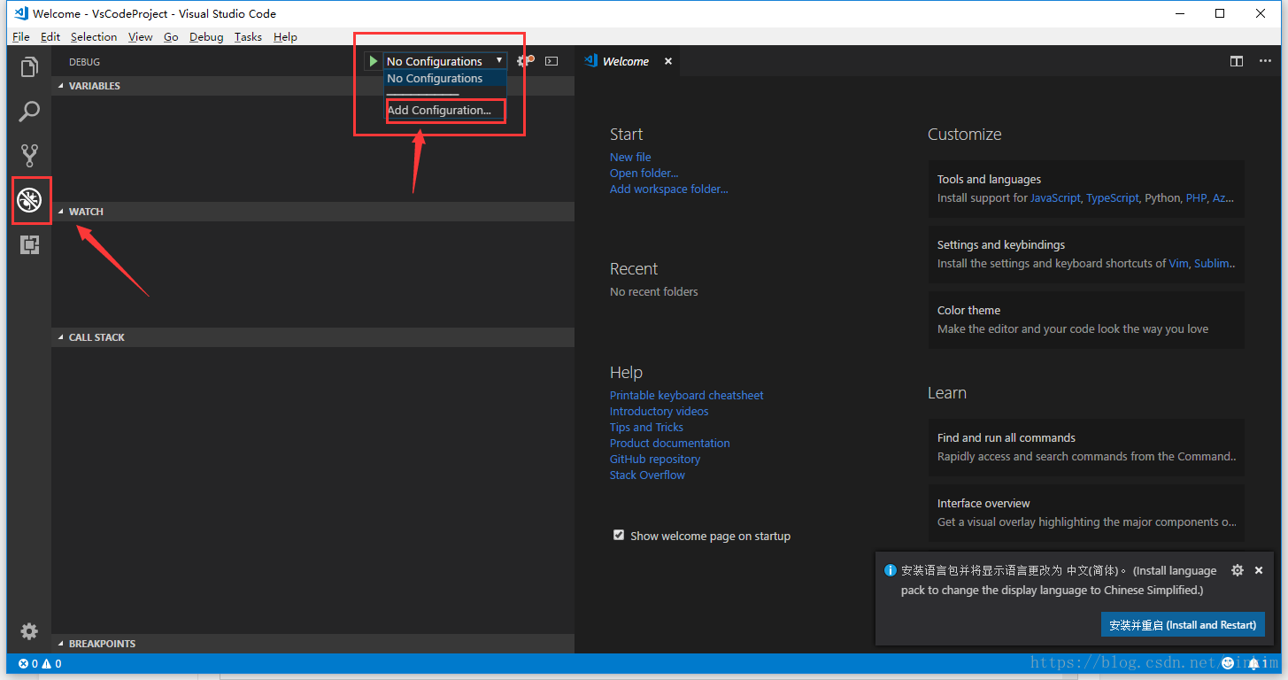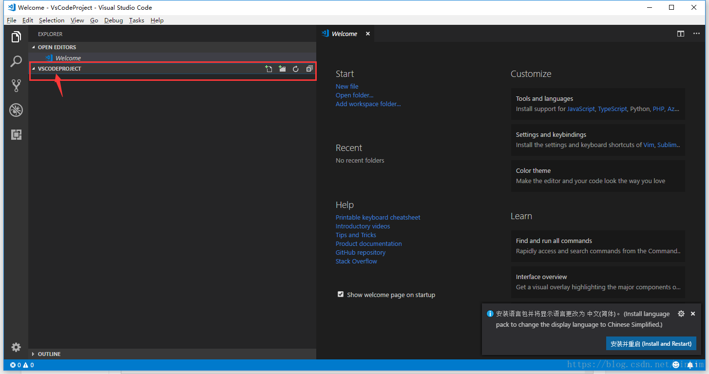 添加完后如下圖,我的文件名為VSCodeProject,添加后所有字母都變?yōu)榇髮憽?/p>