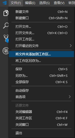 點擊 菜單欄(文件)―> 將文件夾添加到工作區(qū)