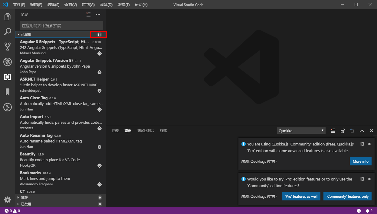 重啟后看到同步到了我最常使用的這個(gè)Gist配置。一共有31個(gè)擴(kuò)展(雖然很多,但VSCode使用依然順滑)。
