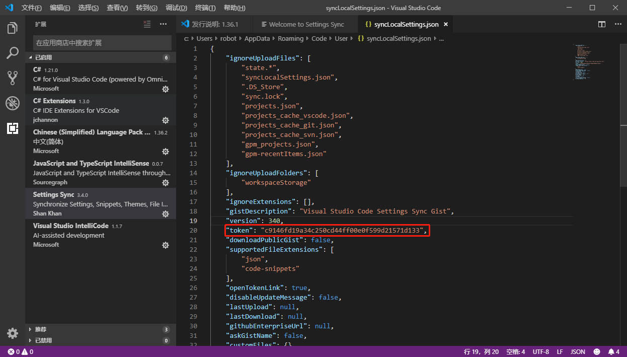 輸入你在github上創(chuàng)建的gist token 記得使用Ctrl+S保存更改