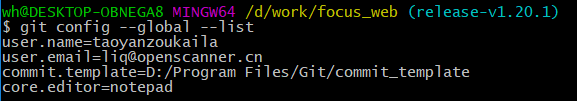 首先用如下命令(如未特別說明,所有命令均默認在Git Bash工具下執行)檢查一下用戶名和郵箱是否配置(github支持我們用用戶名或郵箱登錄):