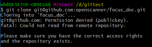 當使用git方式下載時,如果沒有配置過ssh key,則會有如下錯誤提示: