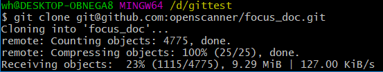 再次嘗試用git方式下載,可以看到已經可以正常下載: