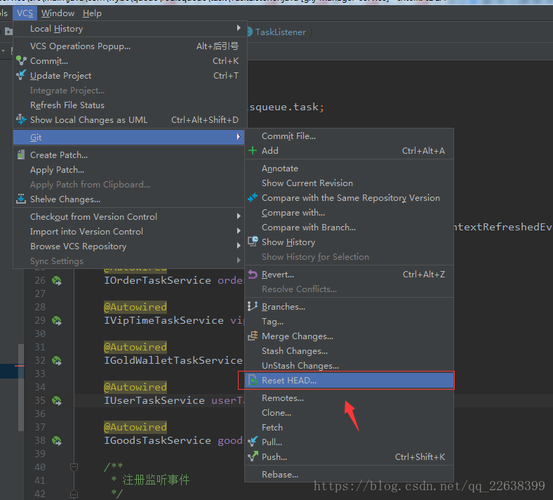 其實是開發中,我不小心把不該提交的代碼提交到了本地,例如TaskListener這個類,改了之后,不能提交,一不小心被我commit到了本地(還沒有推送到遠程)。