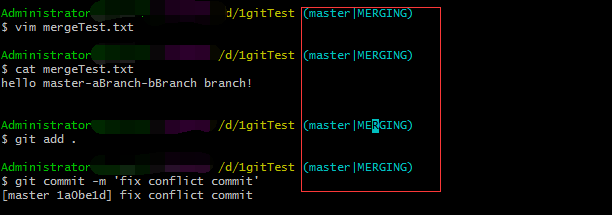 注:簡單方法,使用vim修改,cat查看沖突文件。(注意要刪除git自動生成的沖突代碼分隔符)