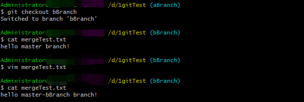 再合并bBranch分支,產生沖突: