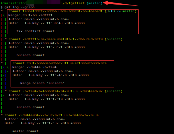合并aBranch分支(將aBranch分支合并到當前master分支上):