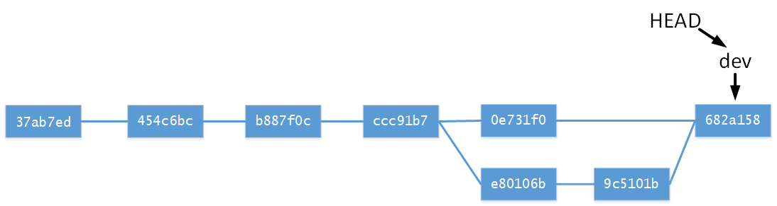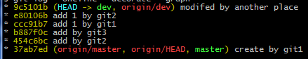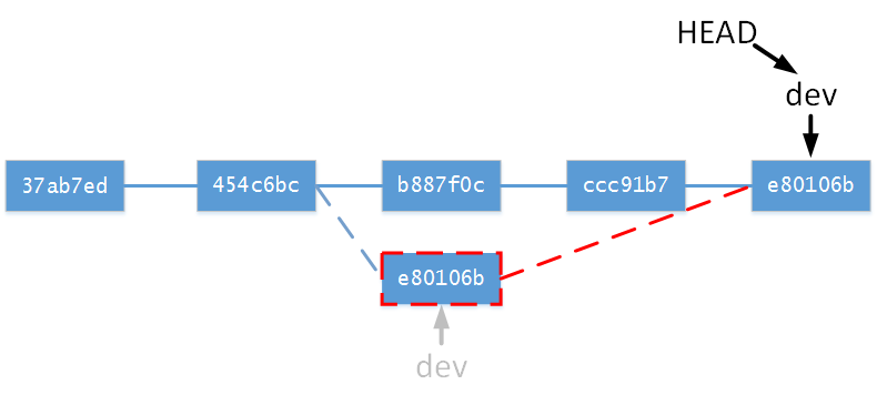 分支樹為(此時分支為(no branch, rebasing dev)):