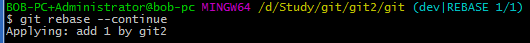 (3)若本地對同一個文件修改,commit后,rebase時,有2種情況:
