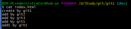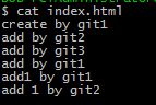 git1拉取最新代碼后,在index中添加“add by git1 add1 by git1”,如下: