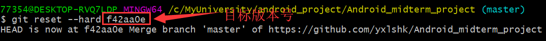 2. 使用“git reset --hard 目標版本號”命令將版本回退: