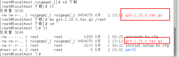 (2)自行下載git安裝包,進行安裝首先下載tar包,然后移動到root目錄中