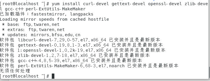 yum install curl-devel gettext-devel openssl-devel zlib-devel gcc-c++ perl-ExtUtils-MakeMaker