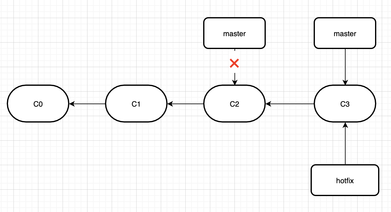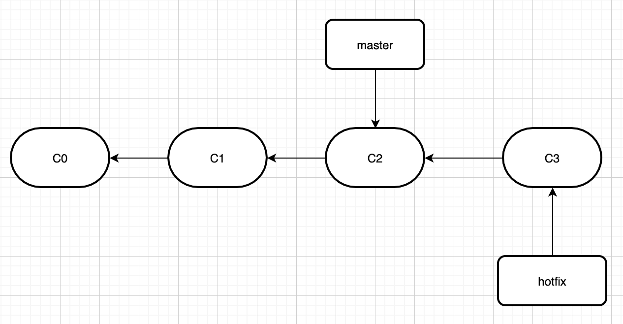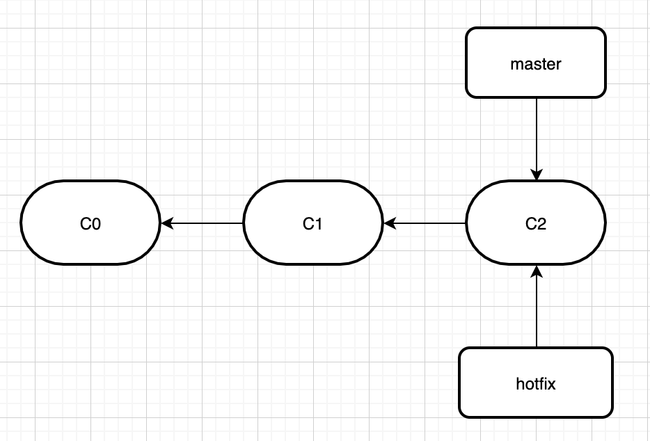 舉個栗子,假如初始存在master和hotfix分支是這樣的。