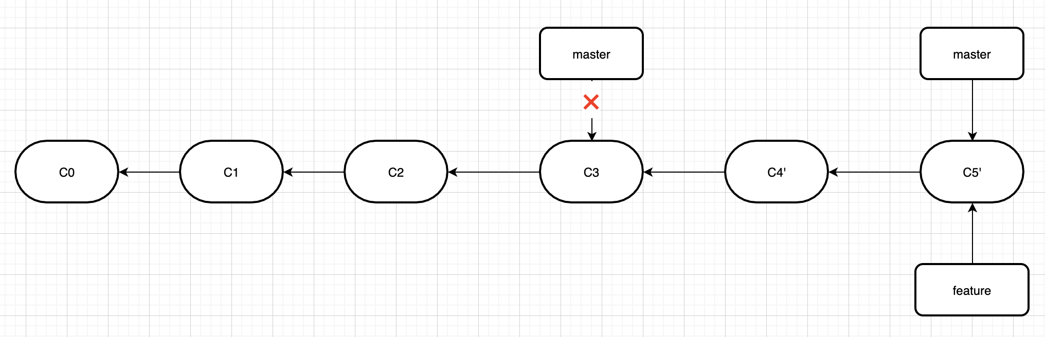 # 切換當前分支到featuregit checkout feature# 將當前分支代碼變基為基于mastergit rebase master