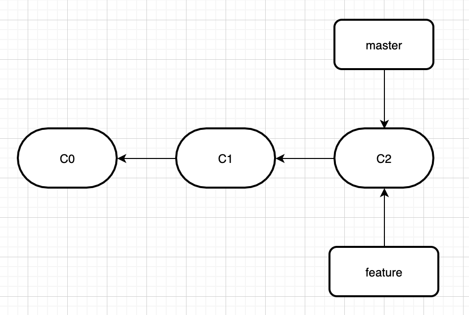 再舉個栗子,假如初始存在feature和master分支情況是這樣的。