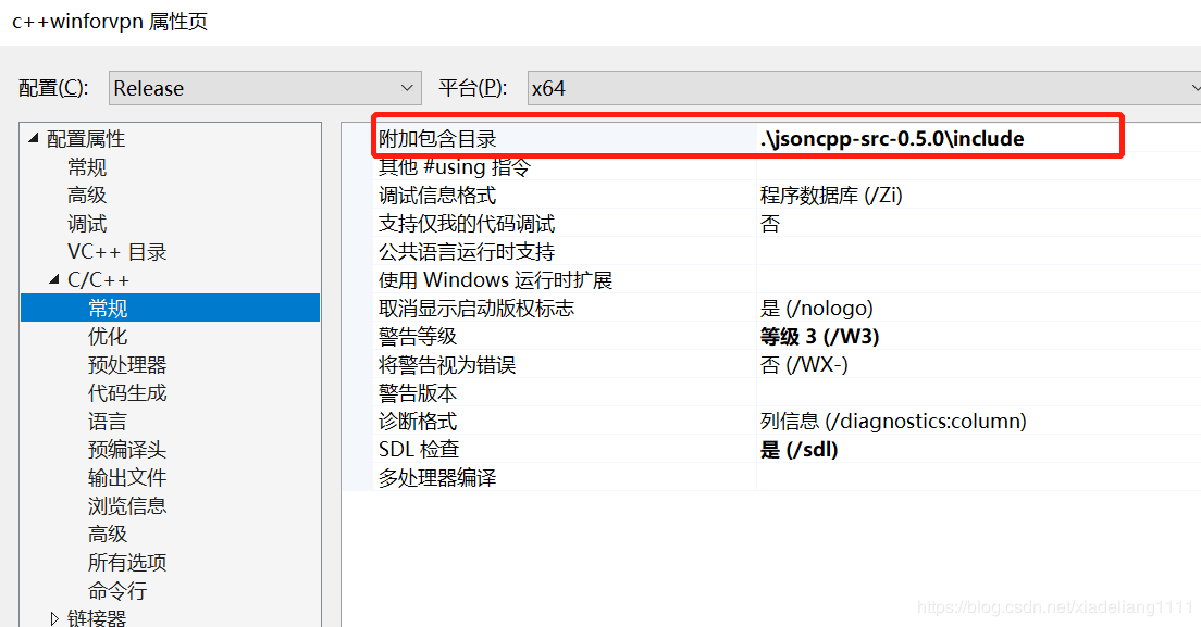 屬性->C/C++/常規->附加包含目錄